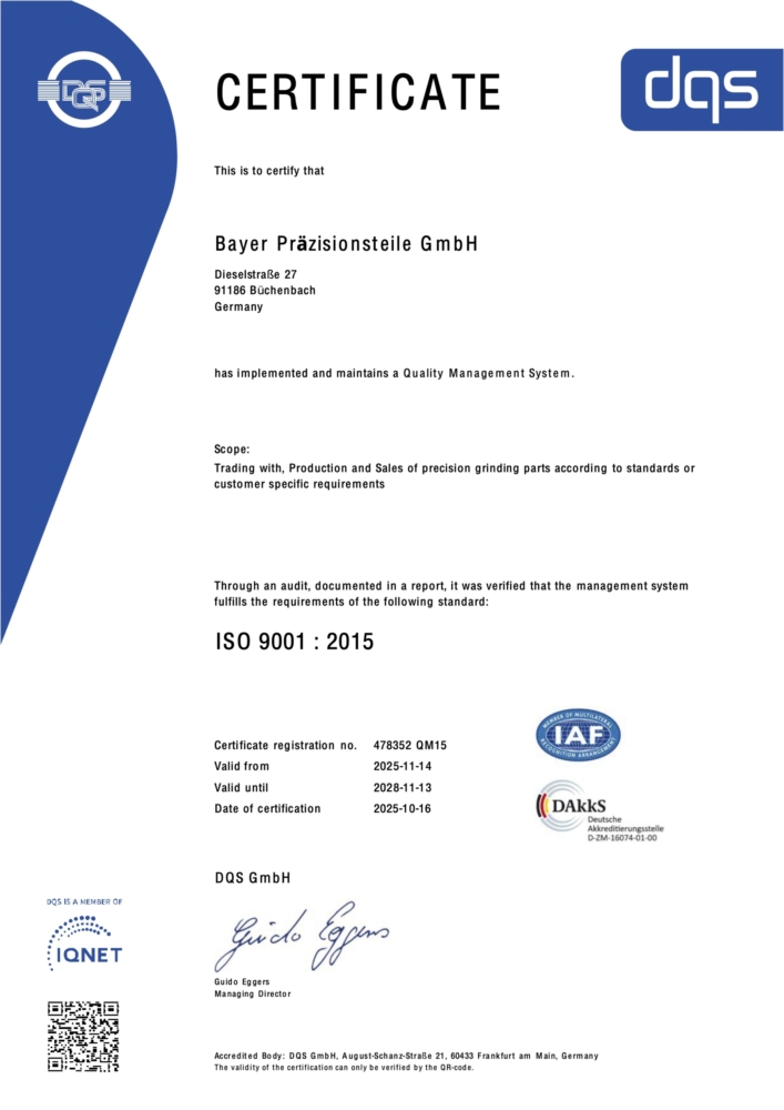 BAYER PRÄZISIONSTEILE GmbH – Das 1990 gegründete Unternehmen fertigt mit modernsten Maschinen, hochpräzise Metallteile. Unsere Spezialisierung ist die Herstellung von kundenspezifischen Teilen nach Zeichnung. Neben den Sonderteilen, fertigen wir auch Normteile in Standard- und Sondergrößen.