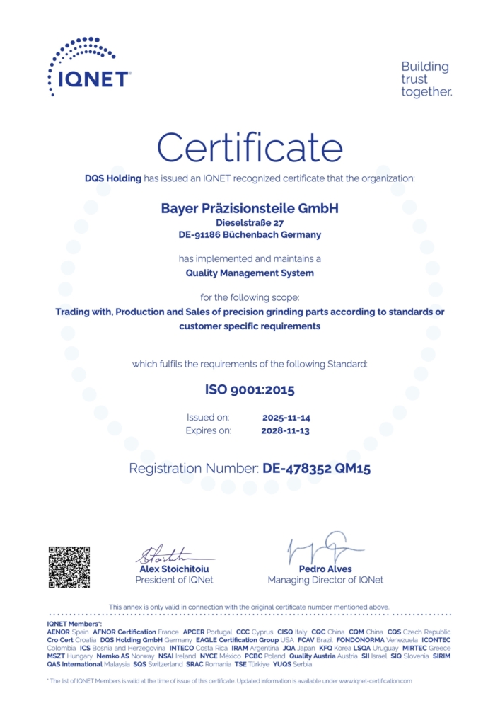 BAYER PRÄZISIONSTEILE GmbH – Das 1990 gegründete Unternehmen fertigt mit modernsten Maschinen, hochpräzise Metallteile. Unsere Spezialisierung ist die Herstellung von kundenspezifischen Teilen nach Zeichnung. Neben den Sonderteilen, fertigen wir auch Normteile in Standard- und Sondergrößen.